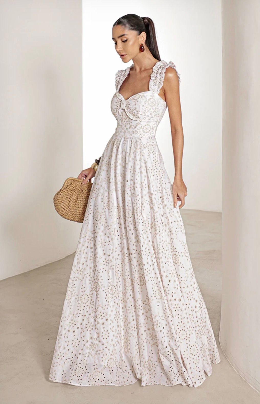 Vestido Longo em Laise com Babados O Vestido Curaçao traduz feminilidade, leveza e romantismo em cada detalhe.Confeccionado em laise delicada, é a escolha perfeita para quem valoriza o charme artesanal aliado à elegância contemporânea. O decote levemente em coração com laço frontal realça o busto de forma sutil e graciosa, enquanto a saia ampla com babados garante movimento e fluidez encantadora. Ideal para madrinhas de dia, casamentos ao ar livre, eventos no campo ou produções sofisticadas de v